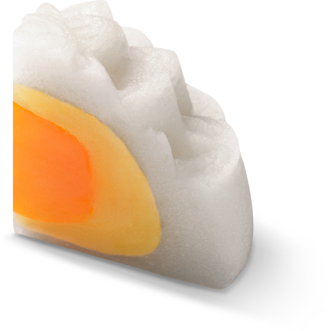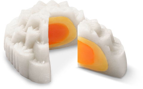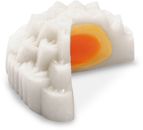 Bánh Trung Thu Dẻo có kiểu dáng hình tròn, kết hợp cùng màu trắng thanh khiết gợi lên hình ảnh đẹp của mặt trăng tròn sáng, biểu tượng cho sự sum họp, đoàn viên trong gia đình.