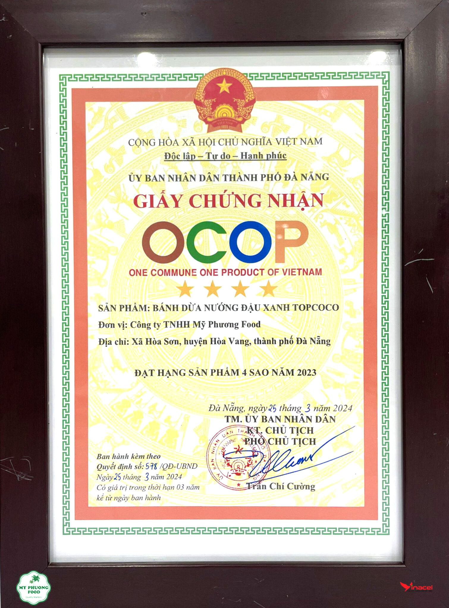 Năm 2021, sản phẩm bánh dừa nướng đậu phộng Mỹ Phương được công nhận đạt chuẩn OCOP 4 sao.