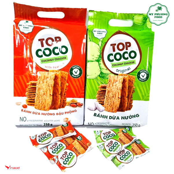 Mô tả sản phẩm Bánh Dừa Nướng TOPCOCO Gói 250g Mỹ Phương Food
