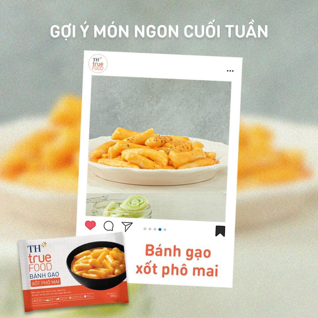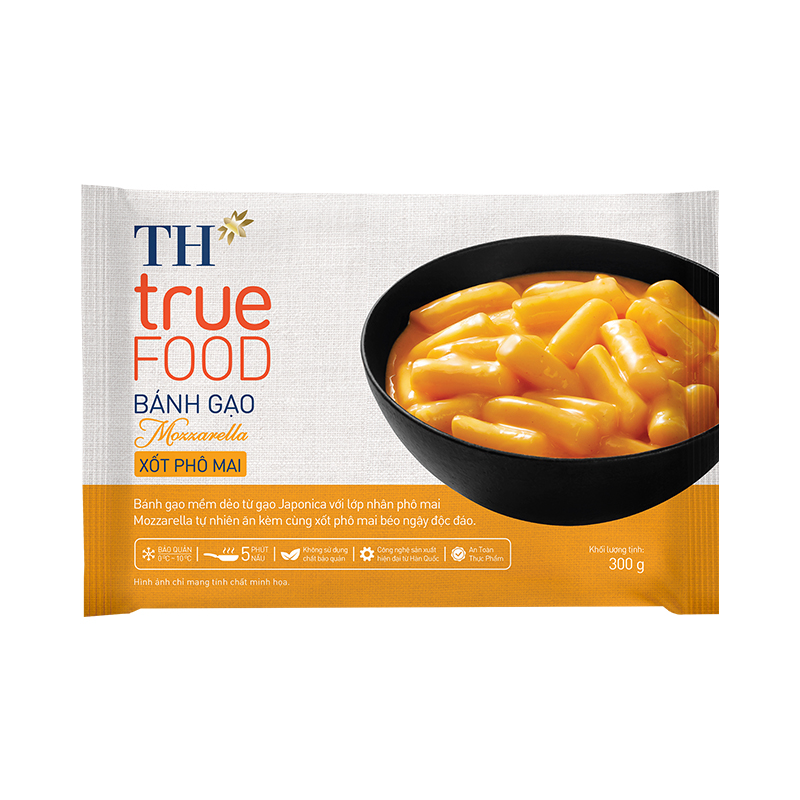 Là sự kết hợp hoàn hảo giữa bánh gạo mềm dẻo làm từ gạo Japonica chất lượng cao từ các vùng canh tác sạch, chuẩn, cùng hương vị béo ngậy đặc trưng của nước xốt phô mai từ sữa tươi, phô mai và bơ tự nhiên của trang trại TH, bánh gạo TH true FOOD có 2 lựa chọn là bánh gạo xốt phô mai và bánh gạo Mozzarella xốt phô mai cho các "fan cứng" của món tteokbokki.