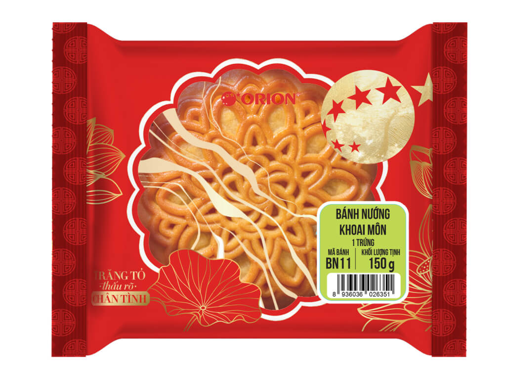 Bánh Trung Thu Nướng ORION Nhân Ngọt Khoai Môn 1 Trứng BN11 (Gói 150g + Túi Giấy Từ 2 Cái) là loại bánh trung thu nướng với lớp vỏ bánh vàng ươm, nhân khoai môn vị ngọt bùi màu tím đẹp mắt. Bánh trung thu Orion là thương hiệu bánh uy tín với thành phần nguyên liệu chất lượng, bao bì đóng gói đẹp mắt. Với hương thơm đậm đà kết hợp từ lớp vỏ bánh vàng óng cùng nhân khoai môn dẻo bùi và trứng muối béo ngậy, bánh trung thu khoai môn 1 trứng đánh thức vị giác của bất kỳ ai dù là thực khách khó tính nhất