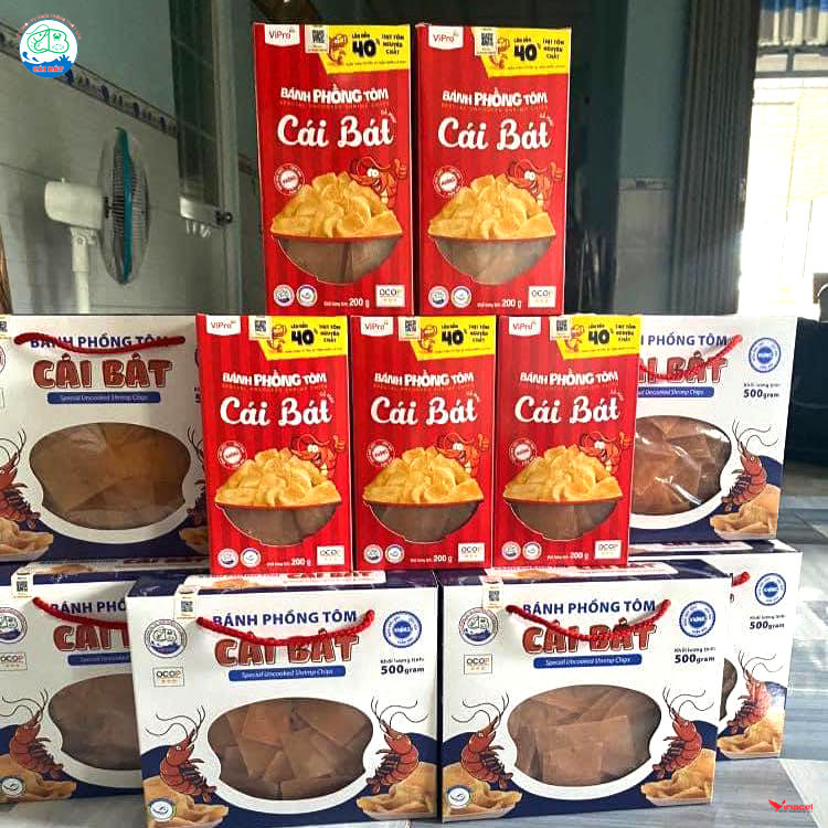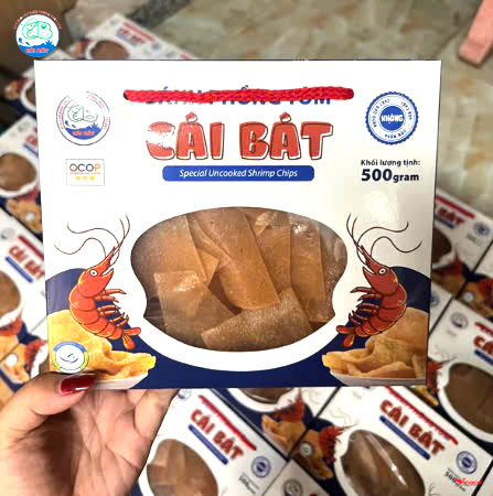 Đặc trưng của bánh phồng tôm HTX Cái Bát là hương vị thơm ngon, giòn tan và màu sắc vàng óng hấp dẫn. Bánh có thể dùng ăn trực tiếp hoặc chế biến thành nhiều món ăn khác nhau như: chiên giòn, làm gỏi, trộn salad… Bánh phồng tôm không chỉ là món ăn vặt hấp dẫn mà còn là món quà ý nghĩa dành tặng cho người thân, bạn bè.