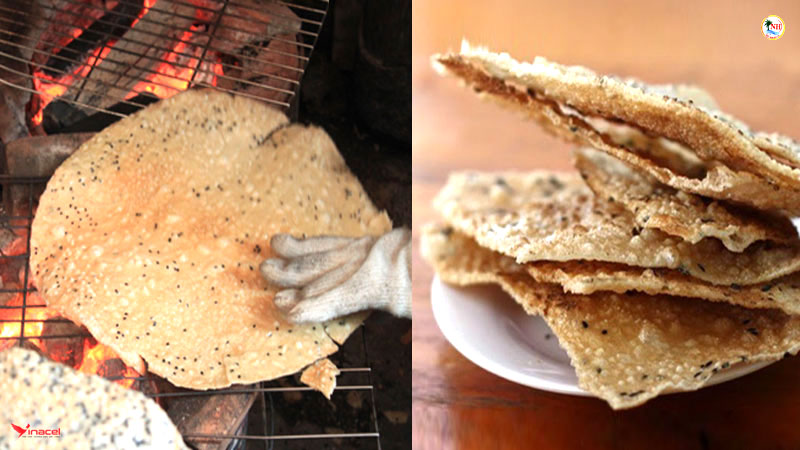 • Bánh sau khi được phơi nắng đã có màu trong đục và trở nên cứng hơn thì bạn chuẩn bị lò than để nướng bánh. Khi nướng bánh, bạn chú ý nướng ở lửa nhỏ và dùng đũa lật đều tay để bánh được chín đều.