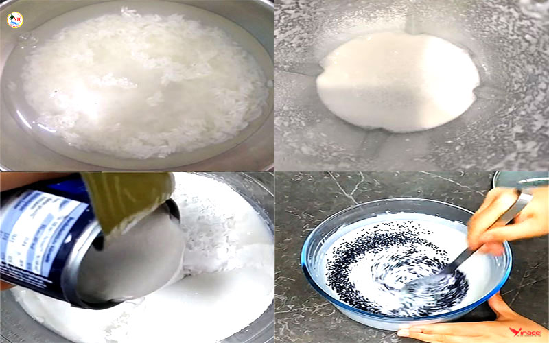 • Đầu tiên, bạn ngâm gạo trong nước từ 5 - 6 tiếng đến khi hạt gạo trở nên mềm rồi vo gạo lại nhiều lần. Tiếp đến, bạn đem gạo đi xay nhuyễn thành hỗn hợp bột.