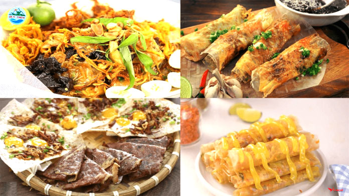 Bánh tráng nướng là món ăn vặt độc lạ và thường được coi là “Pizza Việt Nam”. Người dùng có thể chọn bánh tráng trắng hay bánh tráng mè để nướng lên than hồng và rắc nhiều loại topping thơm ngon khác như phô mai, trứng cút, xúc xích, thịt gà, khô bò, ruốc heo,… Bánh tráng nướng cũng là loại bánh chứa lượng calo cao, từ 300 đến 360 calo cho mỗi chiếc bánh. Do đó, người dùng nên ăn với lượng vừa đủ để không bị tăng cân.