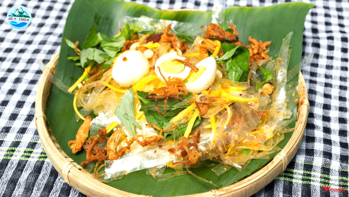 Bánh tráng trộn là món ăn vặt hấp dẫn của giới trẻ hiện nay, được làm từ bánh tráng và nhiều loại nguyên liệu khác như muối tôm, khô bò, trứng cút, xoài xanh, đậu phộng rang,… Món ăn này có vị chua, cay, mặn, ngọt hòa quyện, kích thích vị giác. Bánh tráng trộn có hàm lượng calo cao với khoảng 300 – 330 calo cho mỗi 100gr bánh. Vì thế, người dùng nên ăn vừa phải để không bị tăng cân.