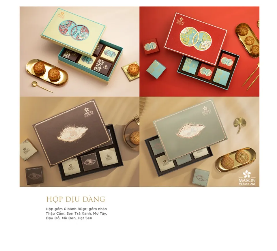 • Bánh trung thu Maison độc quyền từ thiết kế tinh tế bên ngoài vỏ hộp đến những chiếc bánh thơm ngon bên trong không giống bất cứ thương hiệu nào