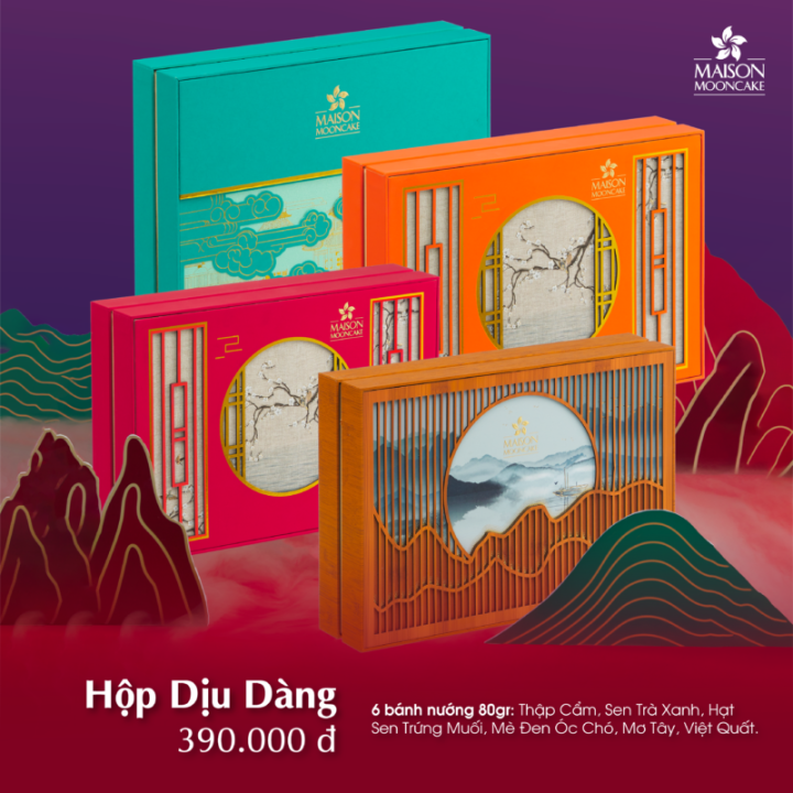 Với 6 hương vị: Trà Xanh, Việt Quất, Thập Cẩm, Đậu Đỏ, Mè Đen, Hạt Sen, Hộp Dịu Dàng sẽ thay lời bạn gửi gắm những tình cảm thân thương, trân trọng đến với cộng sự, gia đình và bạn bè. Cùng ngồi xuống bên nhau, thưởng thức hương vị thượng hạng đến từ Hong Kong, cùng ôn lại những mẩu chuyện xưa, những khoảng thời gian mà cuộc sống bận rộn thường nhật khiến ta tưởng mình đã quên. Trung thu đã đến bên ta, dịu dàng như thế đó.
