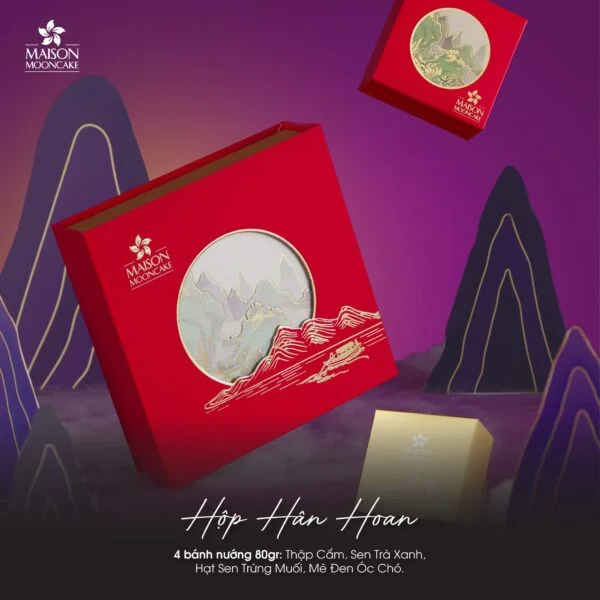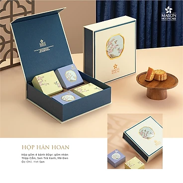 Hộp Hân Hoan 4 bánh nướng 80gr: Thập Cẩm, Sen Trà Xanh, Hạt Sen Trứng Muối, Mè Đen Óc Chó.