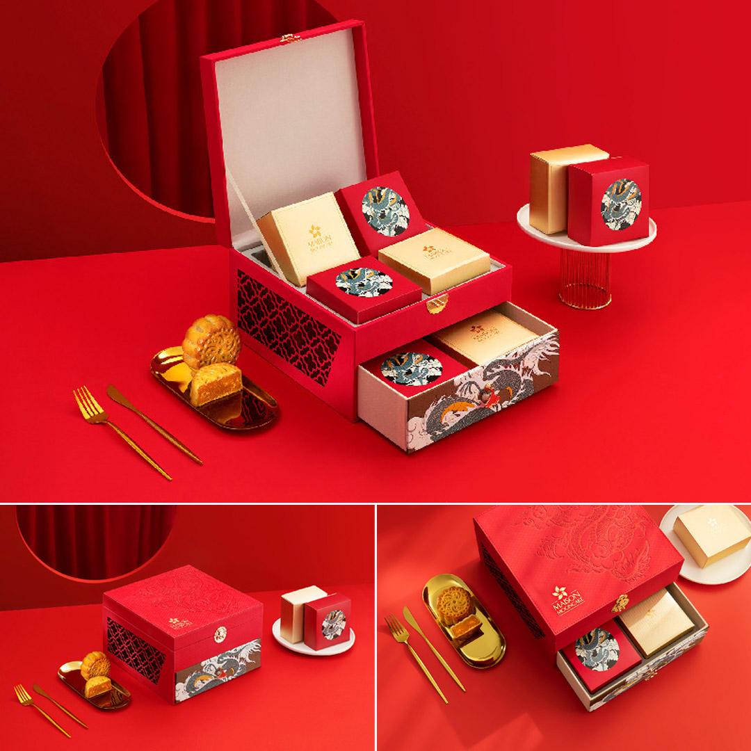 Hộp bánh tinh tế 8 bánh của Maison có thiết kế thời thượng, sang trọng với hộp đựng nắp nam châm có 2 tầng đựng, có gia công tỉ mỉ 2 khóa đóng bằng kim loại vàng cao sang. Hộp có màu đỏ rực rỡ như những xúc cảm đong đầy ở mỗi gia đình trong mùa đoàn viên. Trên mặt hộp còn được in dập chìm, dập nổi hình ảnh rồng múa lượn biểu tượng cho sự thịnh vượng, may mắn. Đây chính là món quà trân quý để bạn dành tặng những người mình yêu thương, gia đình và bạn bè hay cảm ơn, tri ân đến đối tác, khách hàng.