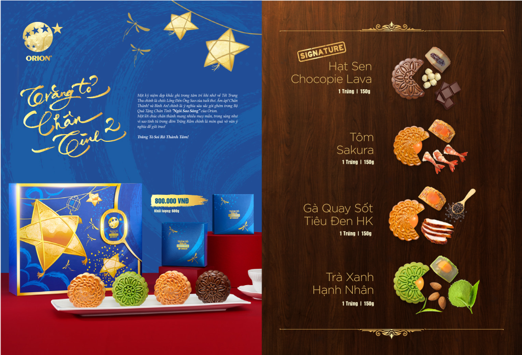 Đại diện Orion cho biết, xuất phát từ sự cảm mến văn hóa Việt Nam, chúng tôi đã lên kế hoạch phát triển sản phẩm bánh Trung thu. Bộ sản phẩm bánh Trung Thu của Orion mang trong mình dấu ấn của sự ‘Chân tình’.
