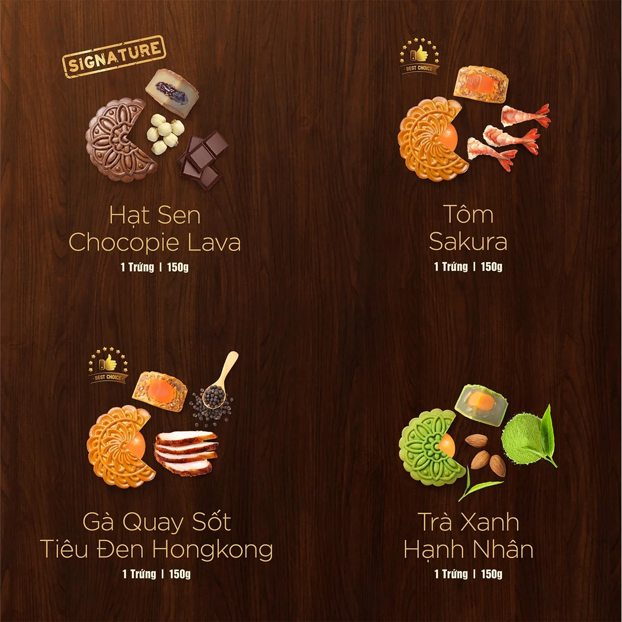 Bộ sản phẩm bánh Trung thu Trăng Hân Hoan với 13 vị bánh đậm chất đặc trưng truyền thống Việt Nam; Hai thiết kế riêng biệt, người tiêu dùng hoàn toàn có thể lựa chọn các vị bánh khác nhau trong 13 vị để tạo nên hộp bánh mang đậm dấu ấn cá nhân và phù hợp với người được tặng.