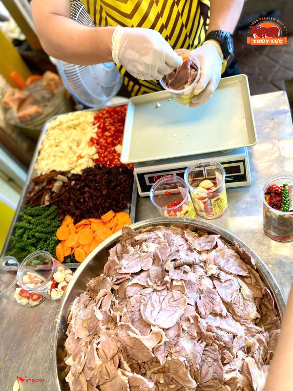 Cơ sở Thúy Lực đã mày mò, sáng tạo cho ra đời sản phẩm Bắp Bò Ngâm Nước Mắm – một món ăn lạ, độc đáo từ thịt bò tươi. Để có được sản phẩm bắp bò ngâm nước mắm đảm bảo chất lượng, thì phải chọn phần thịt bắp được giết mổ trong 24 giờ để giữ trọn vẹn vị tươi ngon và các chất dinh dưỡng trong miếng thịt kết hợp cách pha chế nước mắm độc quyền thêm vị quế, hồi,….đã tạo nên sản phẩm chất lượng cao, độc đáo để phục vụ người tiêu dùng.