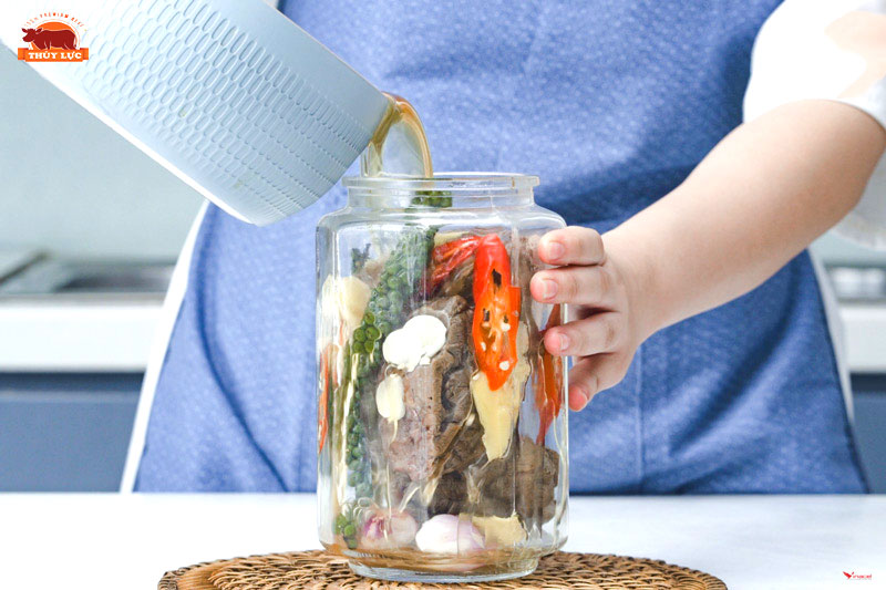 - Một lọ thủy tinh để ngâm thịt.