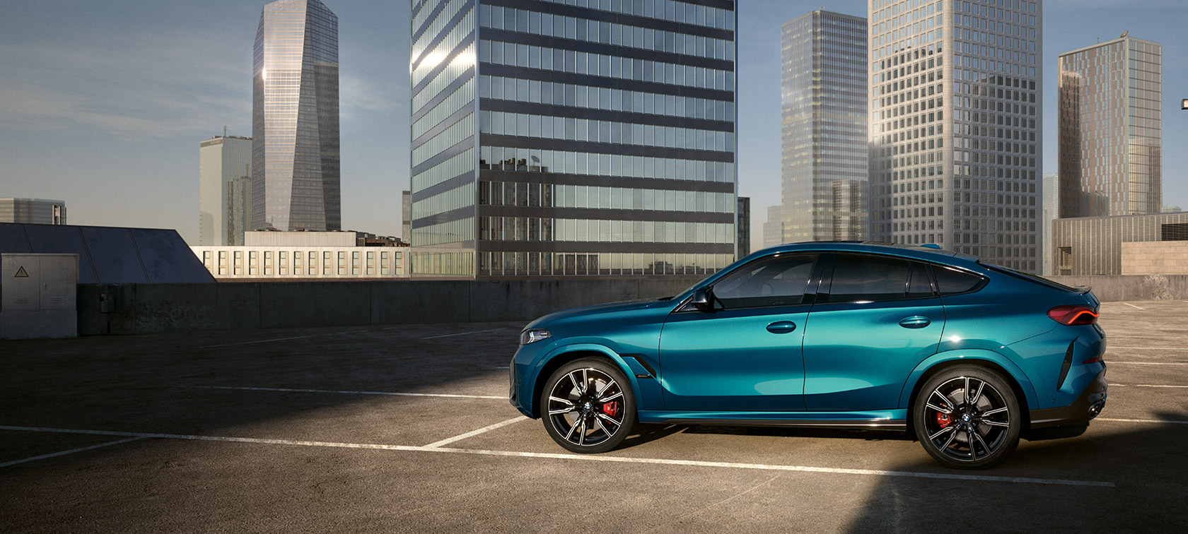 BMW X6 là thiết kế nóc xe kiểu dáng Coupe – Gói trang bị thể thao M Sport. Ngoài ra BMW X6 M Sport trang bị cụm đèn trước BMW Laserlight: Công nghệ này cho phép ánh sáng tạo ra thông qua việc chuyển đổi các tia sáng, phát ra bởi đi-ốt laser rất nhỏ bằng loại vật liệu phốt-pho huỳnh quang bên trong đèn pha. Vật liệu này tạo ra chùm tia đơn sắc của ánh sáng trắng tinh khiết và vô cùng sáng. Đèn laser chiếu sáng xa 500m.