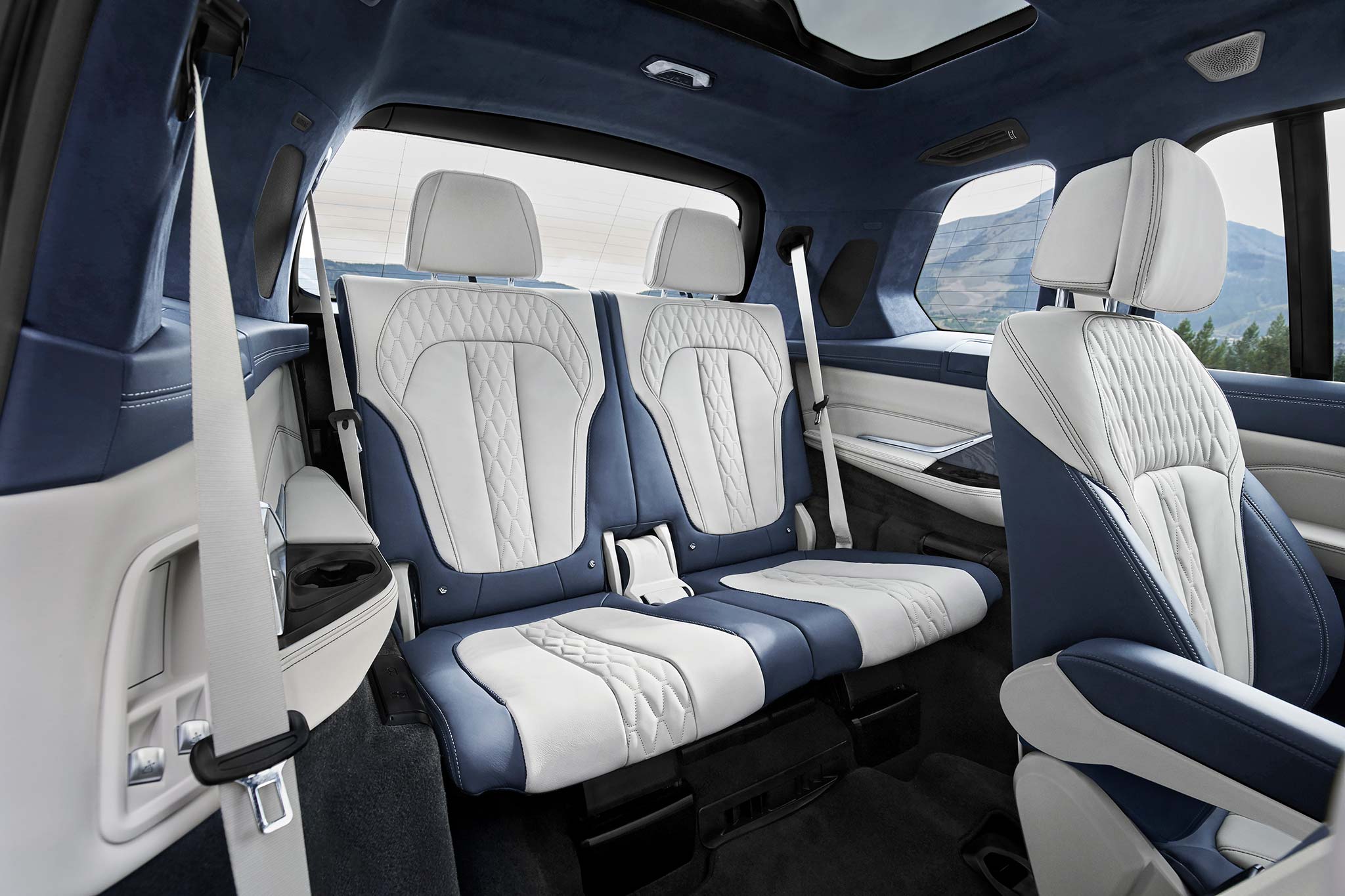 Và ngay trên hàng ghế thứ 3 BMW X7 M Sport cũng trang bị hệ thống điều hòa và cửa gió riêng, giúp người ngồi phía sau thoải mái. Ngoài ra ở khu vực hàng ghế thứ 3 cũng có trang bị cửa sổ trời riêng giúp không gian chiếc xe chở nên rộng dãi hơn.