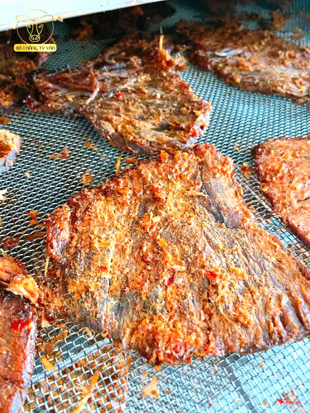 Điều đặc biệt thịt bò chế biến không sử dụng bất cứ một loại chất bảo quản nào. Thịt bò tươi thái thành từng miếng mỏng, ướp qua với các loại gia vị rồi đem phơi nắng.