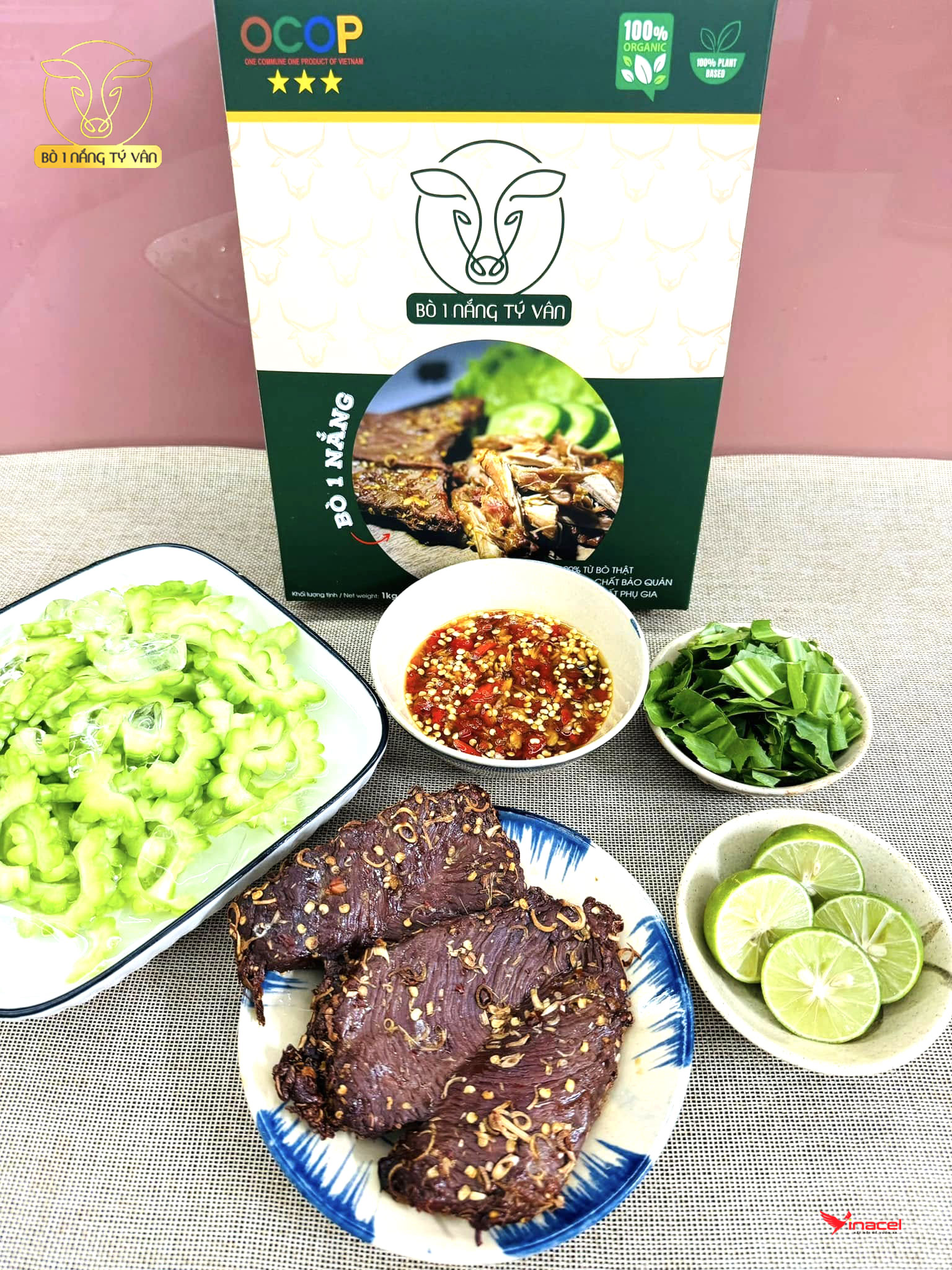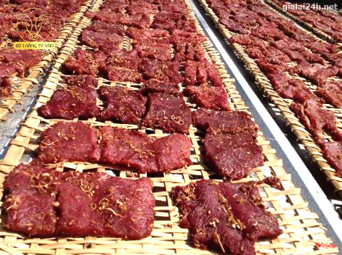 Về Gia Lai nhắc đến Bò một nắng Tý Vân không ai là không biết – cơ sở chế biến bò một nắng nổi tiếng của vùng. Bò một nắng Tý Vân được lọc từ thịt bò tươi nguyên chất cứ tính trung bình 20kg thịt bò tươi thì sẽ cho ra 11kg bò một nắng.