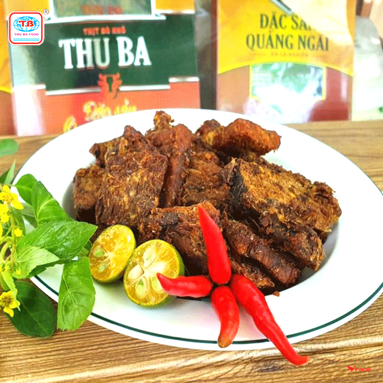 Bò khô Thu Ba nguồn thịt bò Quảng Ngãi có kĩ thuật nuôi dưỡng bò đặc biệt như thả rông tự kiếm ăn trên các đồi núi, đồng cỏ, cho ra loại thịt ngon nhất với hương thơm nhẹ, vị ngọt tự nhiên. Kết hợp với bí quyết chế biến gia truyền làm nên một sản phẩm có hương vị đặc trưng mà không giống với loại bò khô nào khác và được xem là đặc sản Quảng Ngãi nổi tiếng.
