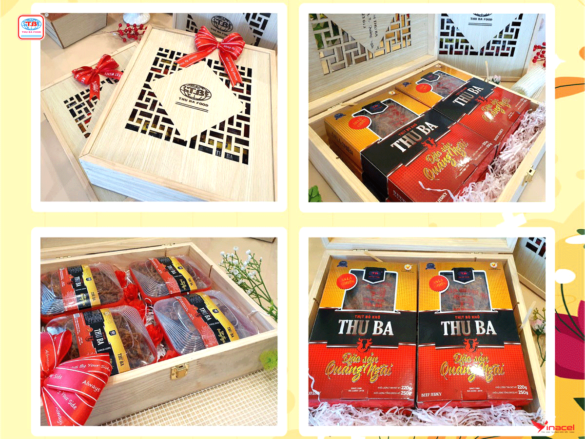 Mỗi dịp tết đến hay những ngày lễ trong năm đặc sản Quảng Ngãi thịt bò khô Thu Ba là sản phẩm không thể thiếu trong sét quà tặng của các doanh nghiệp. Vỏ hộp được thiết kế đẹp mắt sang trong rất thích hợp để làm quà tặng.