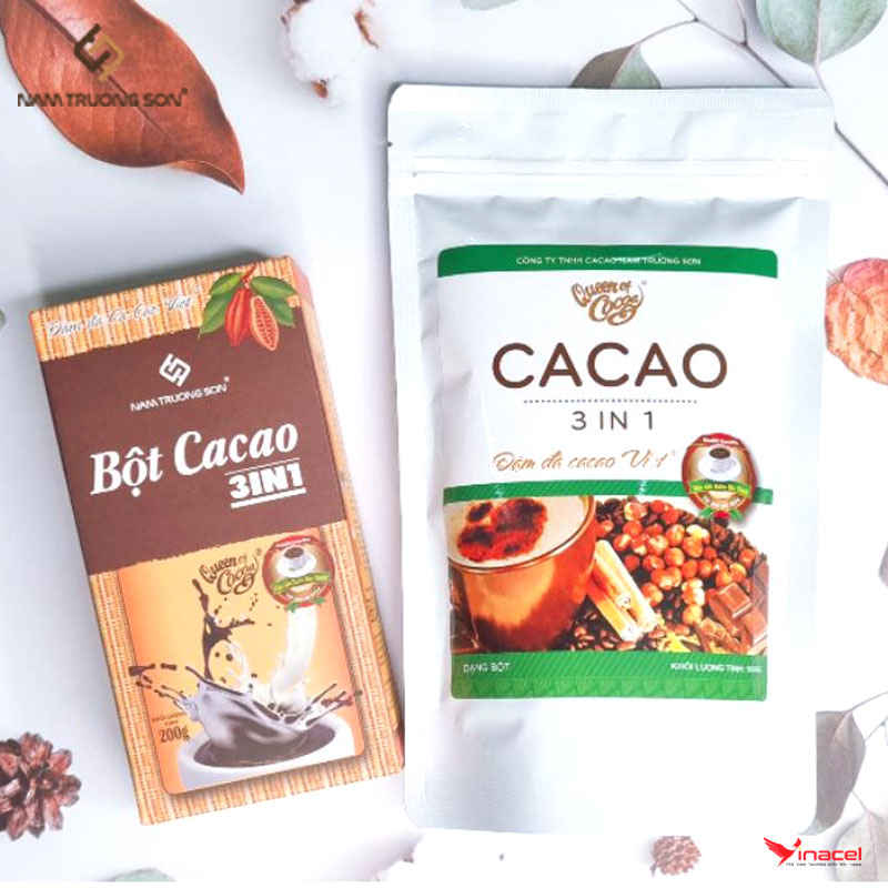 Ca cao 3 trong 1 bao gồm ca cao nguyên chất và thêm đường kèm sữa bột không béo. Giúp tiện lợi trong pha chế và thơm ngon hơn. Bột cacao của Công ty Nam Trường Sơn là thực phẩm hoàn toàn tự nhiên và được sản xuất từ hạt Cacao chất lượng cao của vùng đất đỏ Bazan cao nguyên ĐăkLăk.