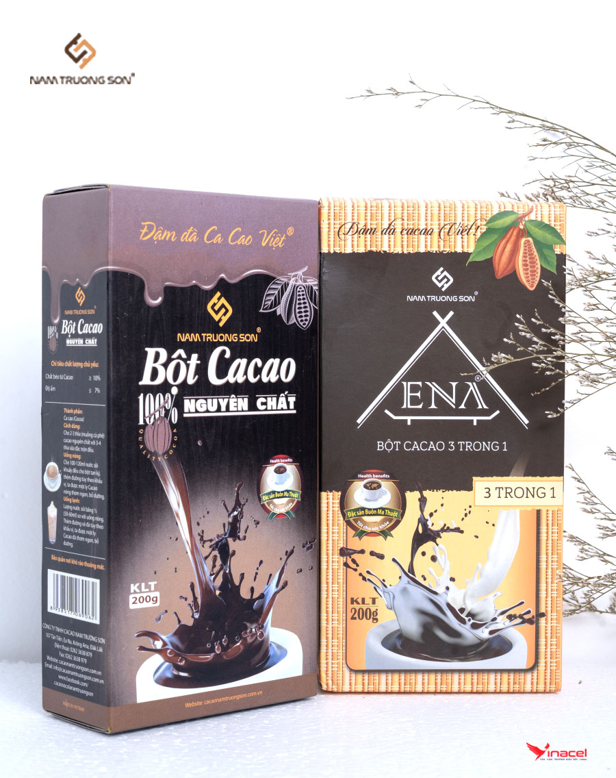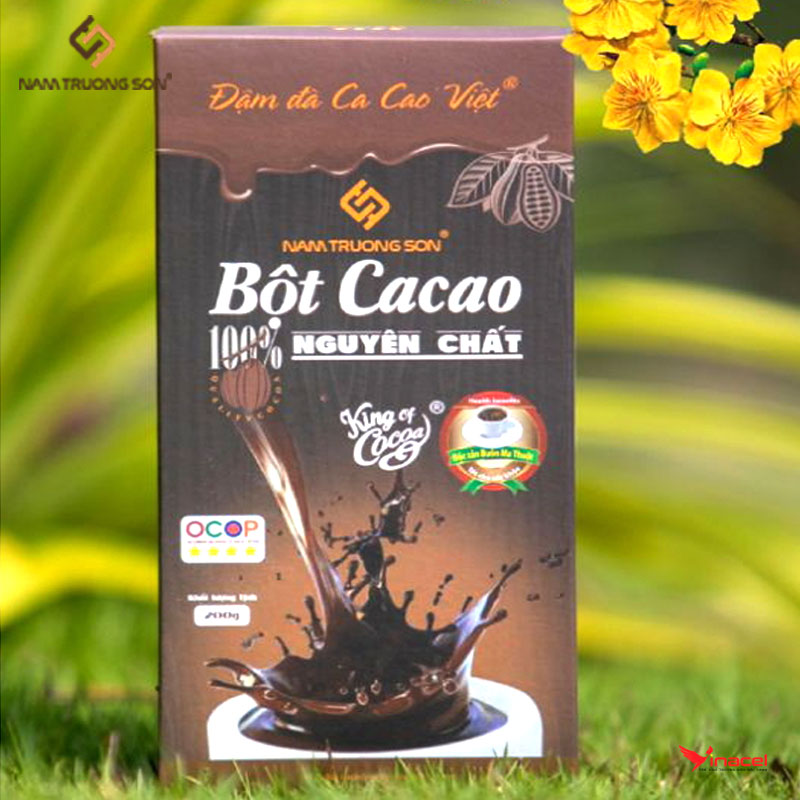 Ca cao nguyên chất Nam Trường Sơn loại 200g có quy cách túi giấy sang trọng, phù hợp biếu, tặng, dùng thử. Bột cacao nguyên chất 200g là thực phẩm thuần khiết thiên nhiên được sản xuất tại Công ty TNHH Ca cao Nam Trường Sơn là công ty duy nhất sản xuất các sản phẩm ca cao và chocolate tại vùng đất đỏ bazan Tây Nguyên. Bột cacao nguyên chất được sản xuất từ hạt ca cao qua công đoạn lên men, phơi khô và sẽ được đưa đến nhà máy Nam Trường Sơn để chế biến.