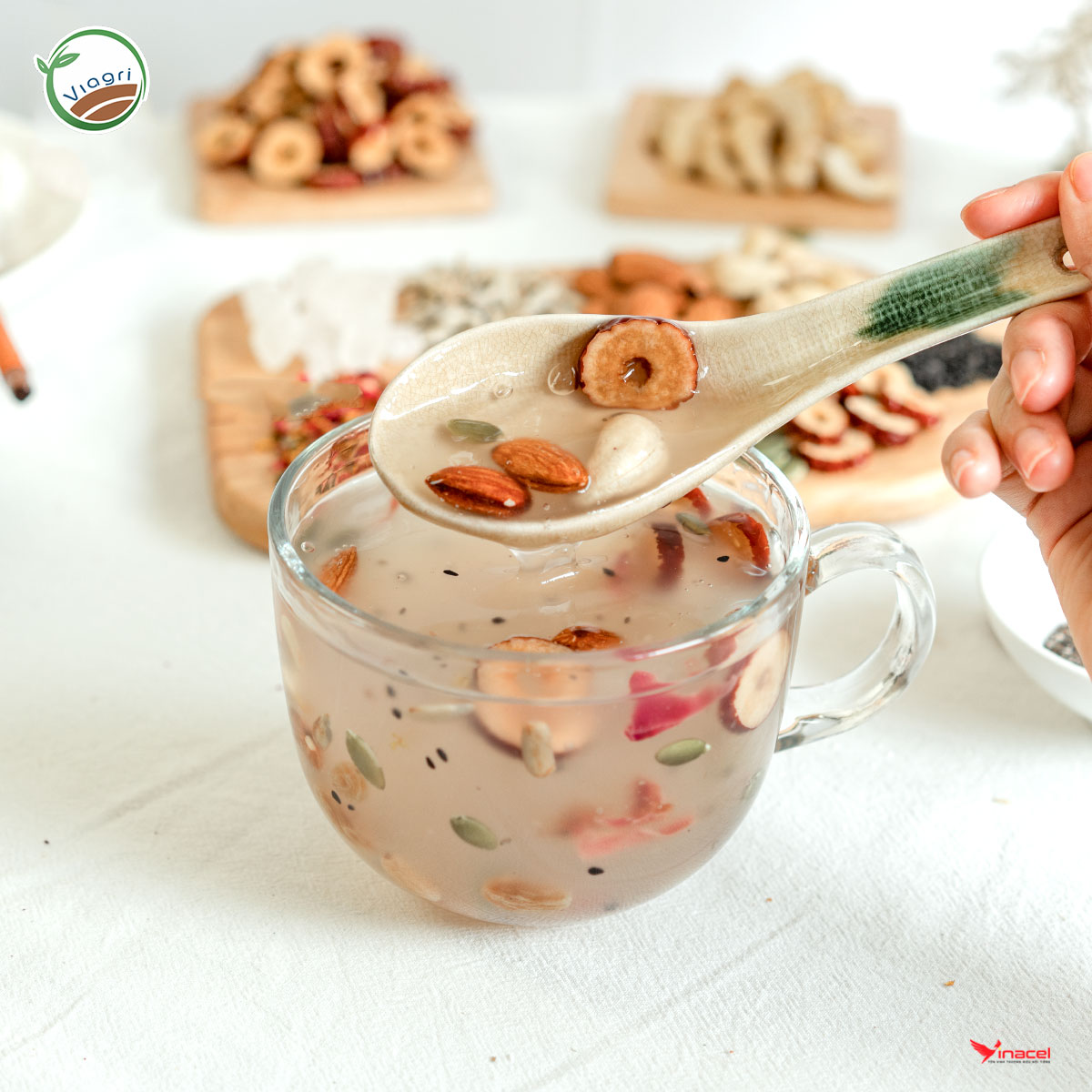 – Các loại hạt topping được qua chế biến bằng công nghệ sấy lạnh khác biệt để giữ nguyên độ tươi ngon vốn có.