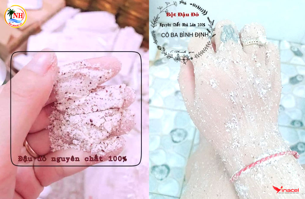 • Bạn có thể sử dụng mặt nạ làm từ bột đậu đỏ nhà Cô Ba Bình Định cho da mặt và toàn thân với tần suất 1-2 lần/tuần. Lưu ý không dùng quá thường xuyên sẽ gây bào mòn, làm mỏng da.