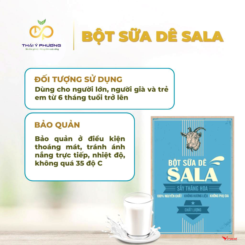 Bột sữa dê nguyên chất SALA thừa hưởng những gì tinh túy nhất của sữa dê. Được cô đặc tạo thành dạng bột giúp cho việc bảo quản và sử dụng trở nên thuận tiên hơn bao giờ hết.