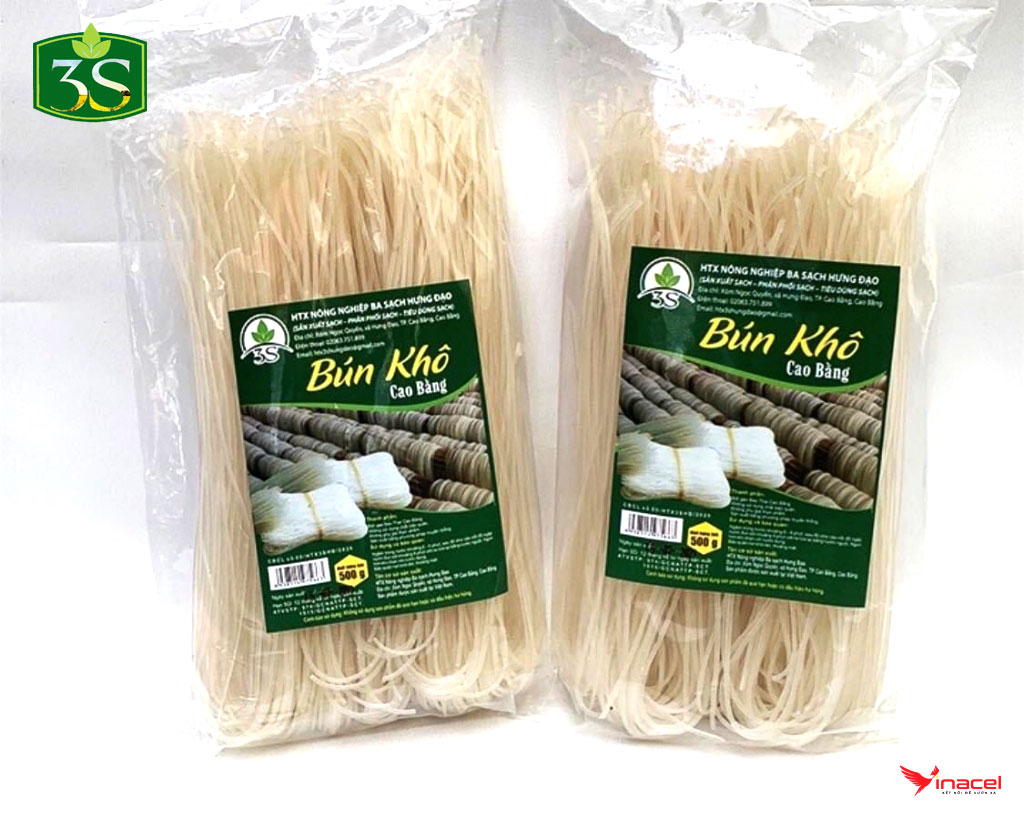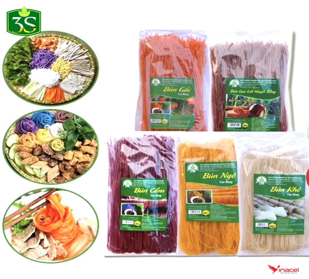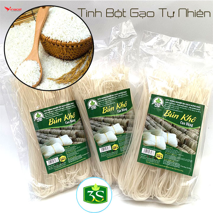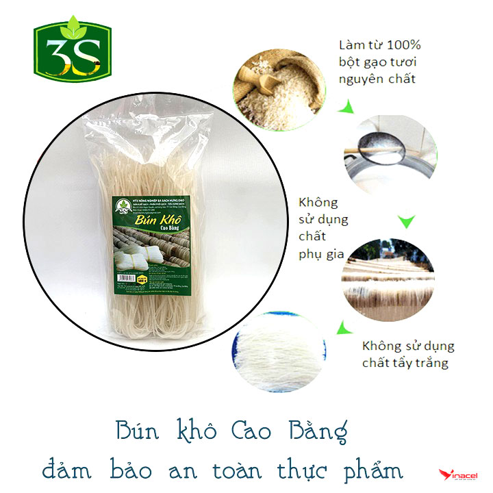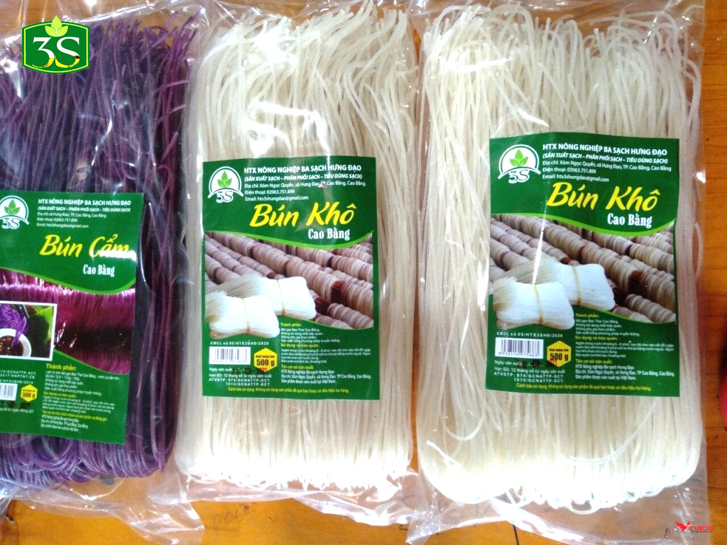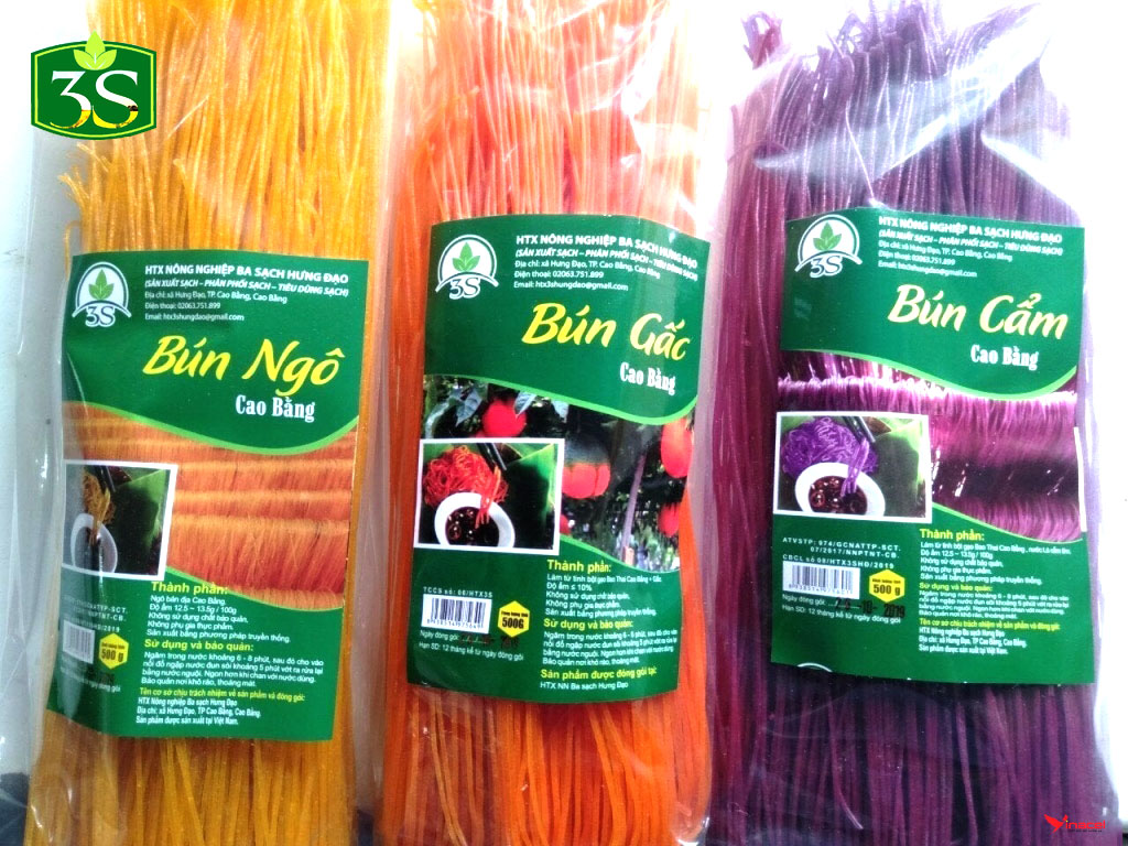 Bún Khô Đặc Sản Cao Bằng 3 Sạch làm từ Gạo Bao Thai thu hoạch từ loại lúa Bao Thai lùn (Gạo đặc sản nổi tiếng Chợ Đồn, Bắc Kạn). Từ tinh bột gạo Bao Thai, người nông dân khéo léo đã làm ra những loại bún khô có màu sắc rực rỡ, đẹp mắt mà lại ngon miệng. Sợi bún to như bún bò Huế, ăn man mát đầu lưỡi, ăn một lần là nghiền luôn.
