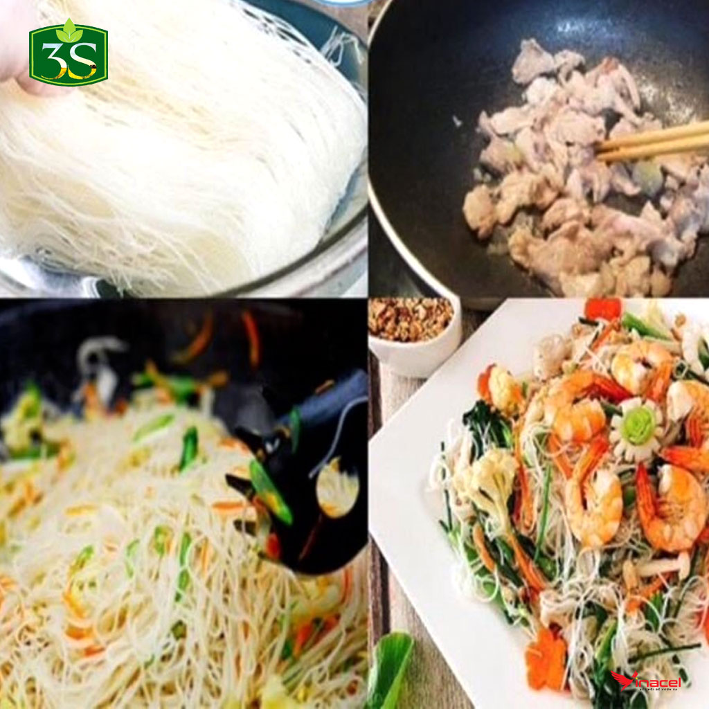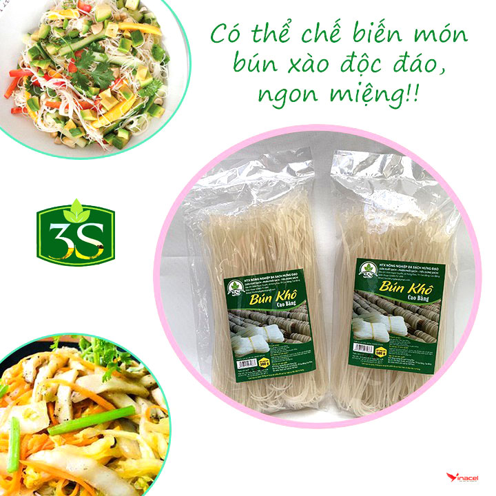 Bún Khô Đặc Sản Cao Bằng 3 Sạch có thể làm được nhiều món ngon như: bún xào thịt với cà chua, bún dọc muồng, bún gà, bún riêu cua, và đặc biệt là nếu anh chị ăn món mỳ ý thì có thể sử dụng bún khô để chế biến, ngon tuyệt vời.