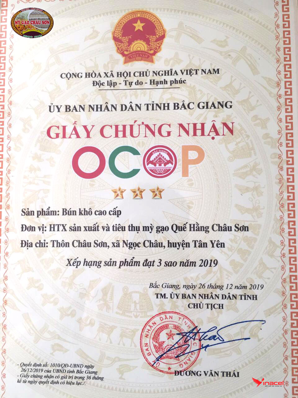 Sản phẩm đặt chứng nhận OCOP 3 sao. Không chỉ là hương vị của gạo tự nhiên mà còn là sự kết hợp tinh tế giữa độ dai của sợi mì và hương vị đặc trưng của gạo quê. Mỗi miếng mì là hành trình khám phá vị ngon đích thực từ đất trời Bắc Giang. Bún khô là loại bún khô sợi nhỏ.