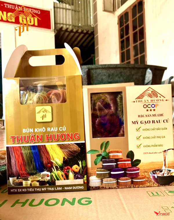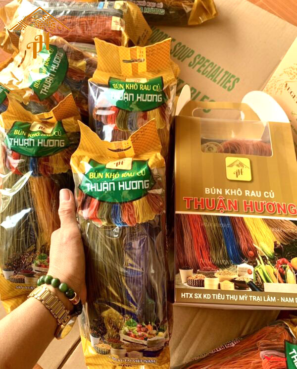 Bún khô Rau củ Thuận Hương là sản phẩm được làm, chế biến từ loại gạo thơm, ngon, chọn lọc kỹ lưỡng. quy trình sản xuất được kiểm soát chặt chẽ, đảm bảo tuyệt đối an toàn vệ sinh thực phẩm. sản phẩm được đóng gói trong bao bì,nhãn mác mang thương hiệu của HTX.