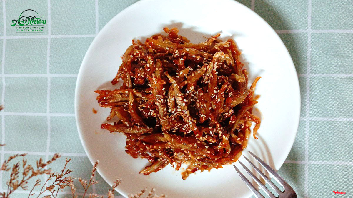 • Cuối cùng, cho cá cơm chay vào đảo sao cho sốt áo đều thì tắt bếp và cho ra dĩa. Bạn có thể rắc thêm chút mè rang để món ăn thơm và đẹp mắt nhé!