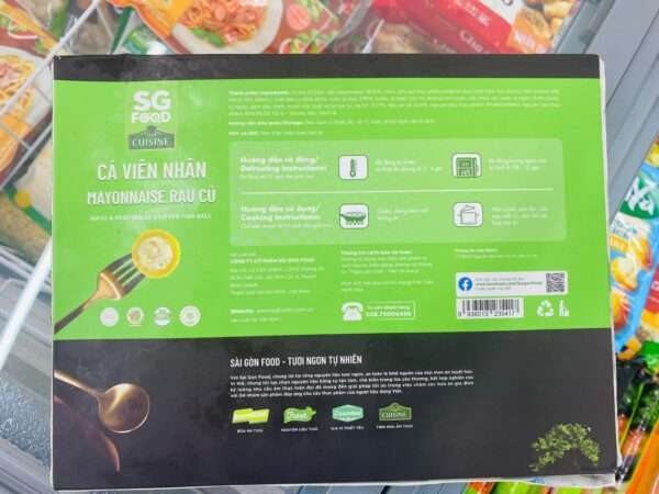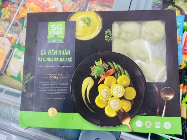 Làm từ thịt cá tươi ngon, dai quyện cùng với nhân mayonnaise béo ngậy, lớp vỏ xốp giòn đã tạo nên sự hấp dẫn của món cá viên nhân Mayonnaise rau củ Sài Gòn Food. Hương vị tươi ngon của cá viên kết hợp với rau củ, đặc biệt không sử dụng màu nhân tạo, sẽ mang đến cho khách hàng những trải nghiệm tươi ngon và an toàn.