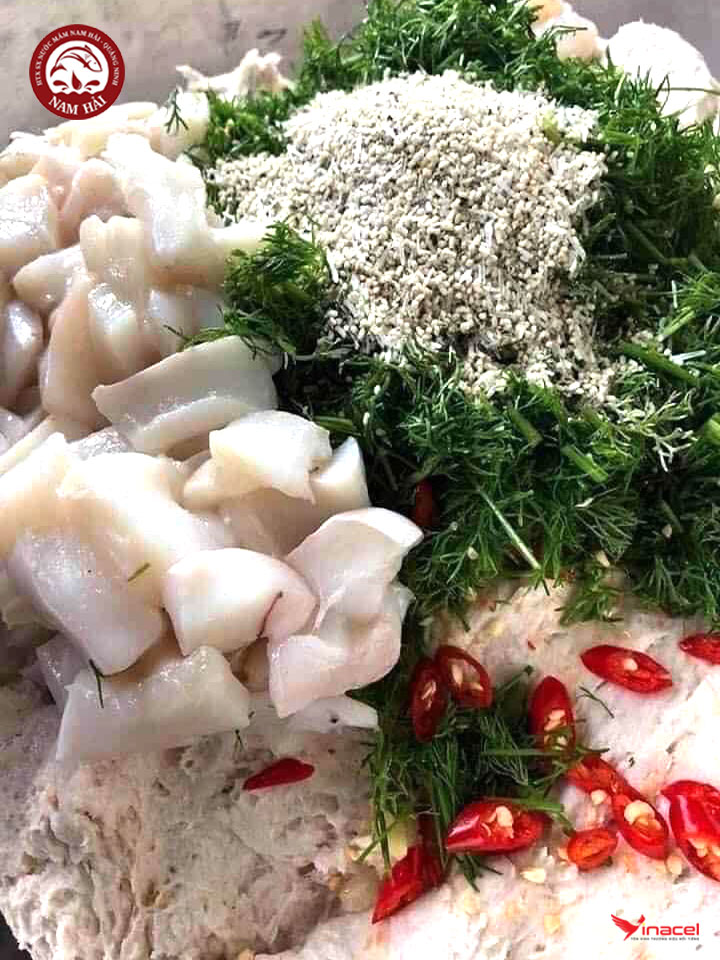 Tất cả các nguyên liệu sẽ được xay nhuyễn, kết hợp cùng một số loại gia vị bao gồm muối gia vị và thì là, chút hà tiêu, ớt để tạo thành những miếng chả vô cùng hấp dẫn. Món chả cá pha mực này có thể chiên giòn hoặc sốt cà chua để ăn kèm cơm. Đây không chỉ là một món ngon cho cả gia đình mà còn là món quà biếu để dành tặng bạn bè, người thân.