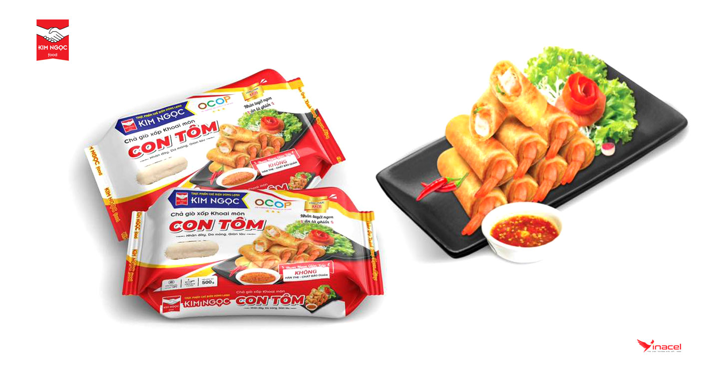 Lựa chọn cho mình nguồn nguyên liệu cực kì hạn chế chất béo để các tín đồ của ẩm thực thỏa sức ăn uống. Với nguyên liệu chính là tôm cùng với các loại rau củ khác như khoai, cà rốt, nấm, củ sắn, hành tím,.. là những nguyên liệu nhẹ nhàng, dễ chuyển hóa năng lượng và không chứa hàm lượng calo cao. Bên cạnh đó chả giò rế tôm đã được cuốn sẵn, đều hình đều dạng, đóng gói cẩn thận. Vận hành theo quy tắc khép kín từ vùng nuôi đến bàn ăn. Mọi khâu sản xuất đều được qua kiểm soát để đảm bảo an toàn và sản phẩm đạt chuẩn. Những thanh chả giò rế tôm trắng tinh nằm gọn trong hộp mang lại cho bạn một cảm giác sạch sẽ và đều mắt khiến cho bạn muốn chiên để dùng ngay. Thay vì mấy cả tiếng để mua nguyên liệu, hì hục ngồi sơ chế từng nguyên liệu, cuộn rồi chiên thì giờ đây bạn chỉ mất 5 phút cắt hộp và chiên là bạn đã có ngay một món chả giò rế tôm giòn rụm thơm ngon chất lượng. Đối với những gia đình nào đông người, thường xuyên tổ chức đám tiệc hội tụ anh em gia đình mà muốn tiết kiệm thời gian thì chả giò rế Kim Ngọc Food là lựa chọn ưu tiên.