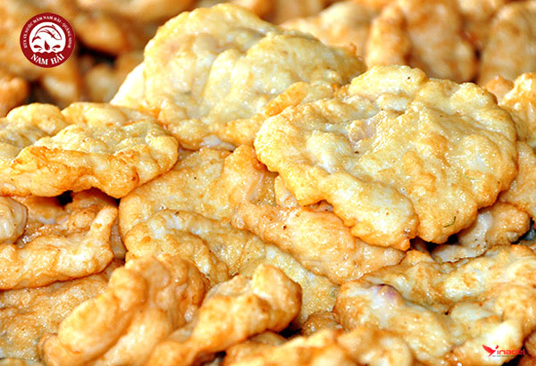 * Chả mực Hạ Long có màu vàng ruộm, vừa béo vừa bùi.