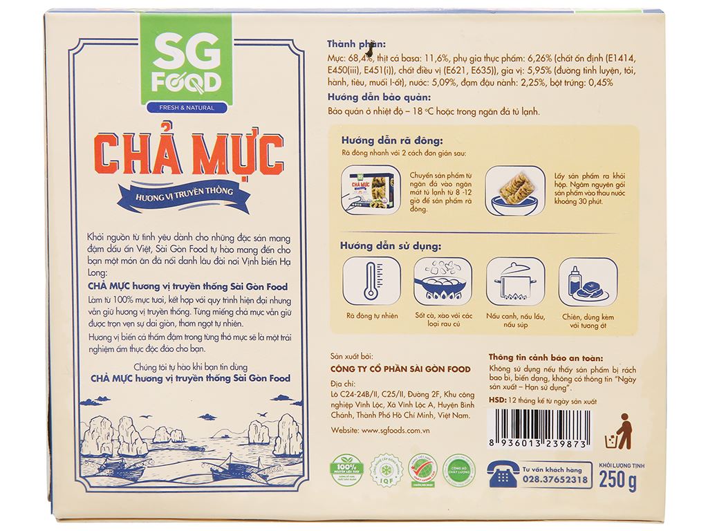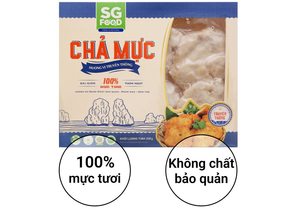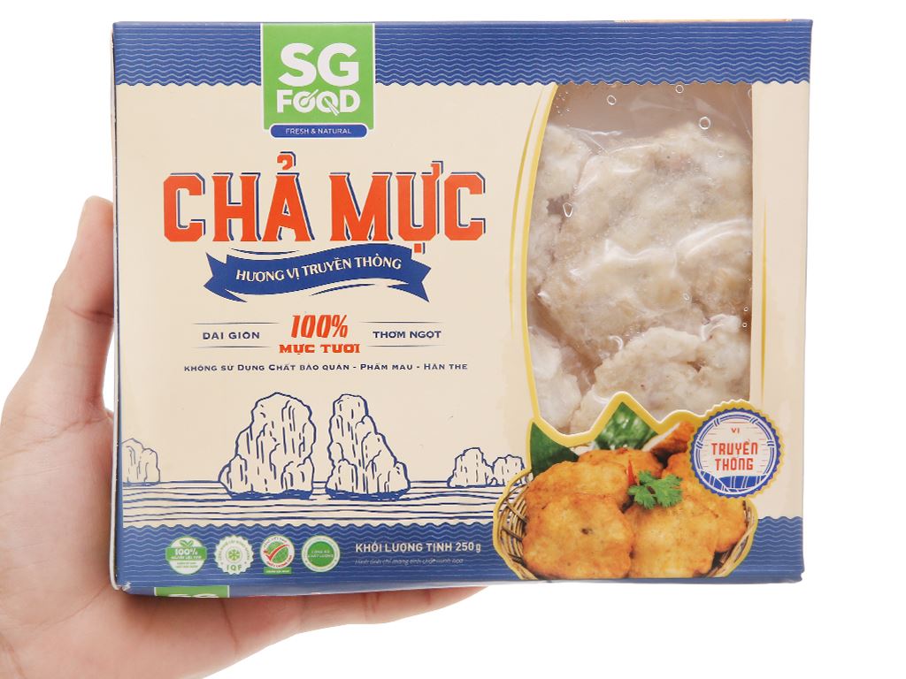 Chả S.G Food với công thức chế biến độc đáo, sản phẩm đảm bảo giữ nguyên hương vị thơm ngon của chả mực độc đáo. Chả mực hương vị truyền thống S.G Food gói 250g được chế biến từ nguyên liệu mực tươi ngon kết hợp cùng các loại gia vị độc đáo, dễ dàng chế biến các món ăn chiên, sốt, nấu lẩu,...