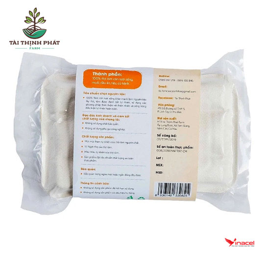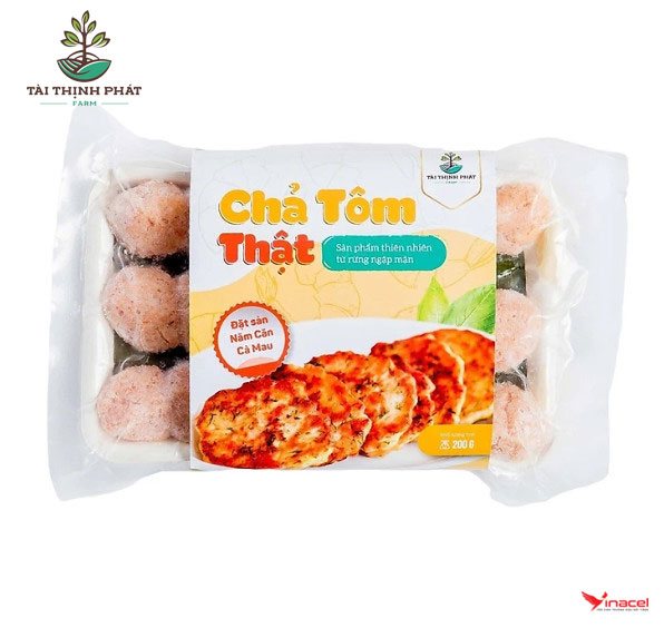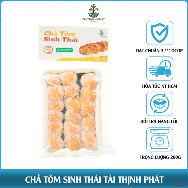 Chả tôm sinh thái dai ngon, thơm béo có vị ngọt được chế biến theo quy trình khép kín, được bảo quản dưới dạng đông lạnh và đóng gói theo quy trình công nghệ cao. Ngoài ra, Tài Thịnh Phát cam kết thành phẩm chả tôm sinh thái không sử dụng các chất bảo quản độc hại, không gây ảnh hưởng đến sức khỏe người tiêu dùng. Bao bì trong được hút chân không giúp chả tôm được bảo quản đúng yêu cầu và tiêu chuẩn.