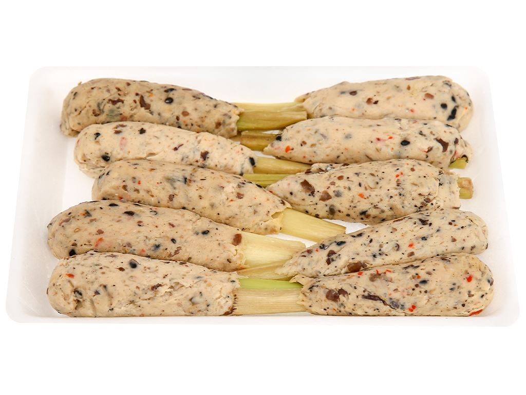 - Đầu tiên, bạn trộn đều hỗn hợp các nguyên liệu sau: 200g thịt heo xay, 100g giò sống, 2 nhánh sả băm, 3 lát gừng băm, 5 củ hành tóm băm, 4 tai nấm mèo băm, 8 lá lốt băm và 1 muỗng canh hành phi.
