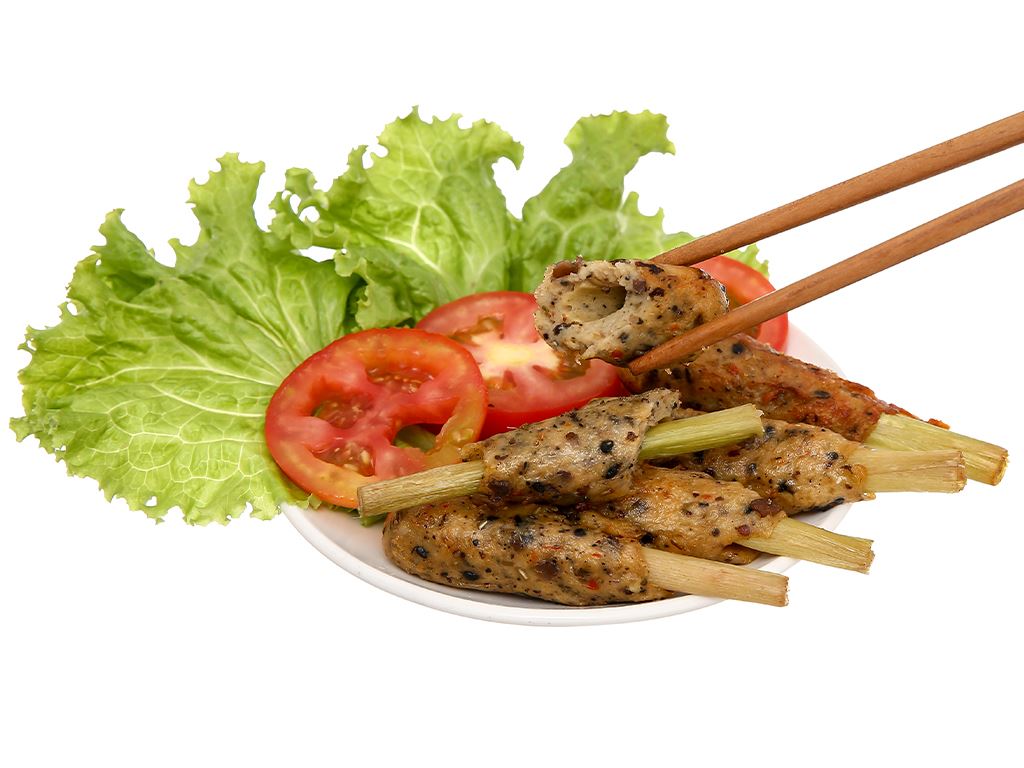 Đầu cây sả rửa sạch, sau đó lấy 1 lượng hỗ hợp đã trộn đều nắn lên 2/3 cây sả, chừa lại đoạn cuối để cầm nướng và ăn.