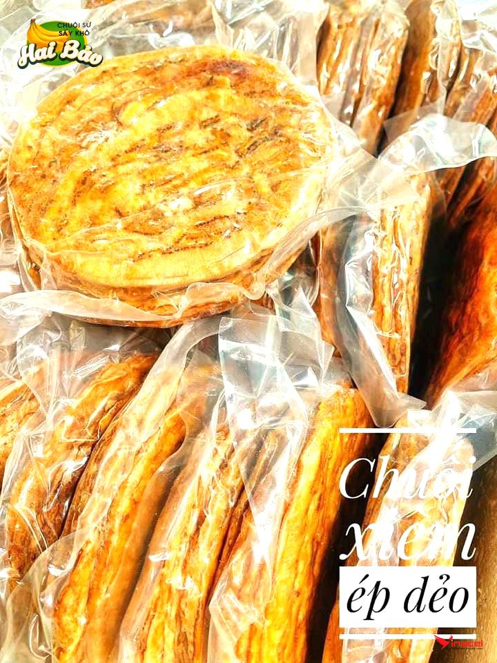 Sản phẩm chuối sấy khô Hai Bảo được chọn và ép ra từ những quả chuối xiêm chín mọng, phơi đủ nắng, cho ra miếng chuối dẻo thơm, vàng ươm tự nhiên, ngọt dịu mật chuối. 100% làm từ chuối xiêm tươi chín mùi được ép sấy liên tục trong lò sấy khép kín đủ nhiệt nên chuối có màu vàng tự nhiên óng ánh thơm ngon, ngọt tự nhiên. Đảm bảo không tẩm đường, hương liệu, chất bảo quản...