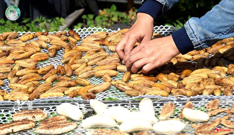 • Sau đó, chuối sẽ được sấy khô trong lò sấy công nghiệp với nhiệt độ và thời gian phù hợp. Quá trình sấy sẽ giúp loại bỏ hoàn toàn độ ẩm trong chuối và tạo ra một lớp vỏ bên ngoài giòn tan, bảo vệ lớp thịt chuối bên trong không bị tổn thương.
