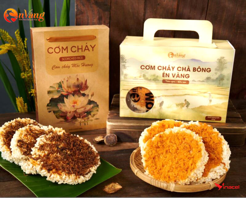 Cơm cháy Én Vàng, một sản phẩm được làm từ gạo nếp Thầu dầu, sự kết tinh từ những hạt ngọc trời. Với vùng nguyên riêng, chính điều đặc biệt này đã tạo nên sự khác biệt với các sản phẩm khác trên thị trường.