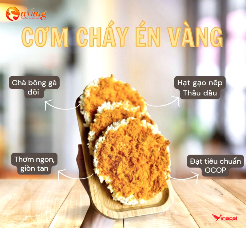 Cơm cháy Én Vàng là sản phẩm cơm cháy duy nhất trên thị trường có vùng nguyên liệu riêng, kiểm soát nghiêm ngặt chất lượng ngay từ đầu vào và đã được Hội nông dân Huyện Phú Bình cấp chứng nhận Được phép sử dụng nhãn hiệu tập thể “Lúa nếp Thầu Dầu”.