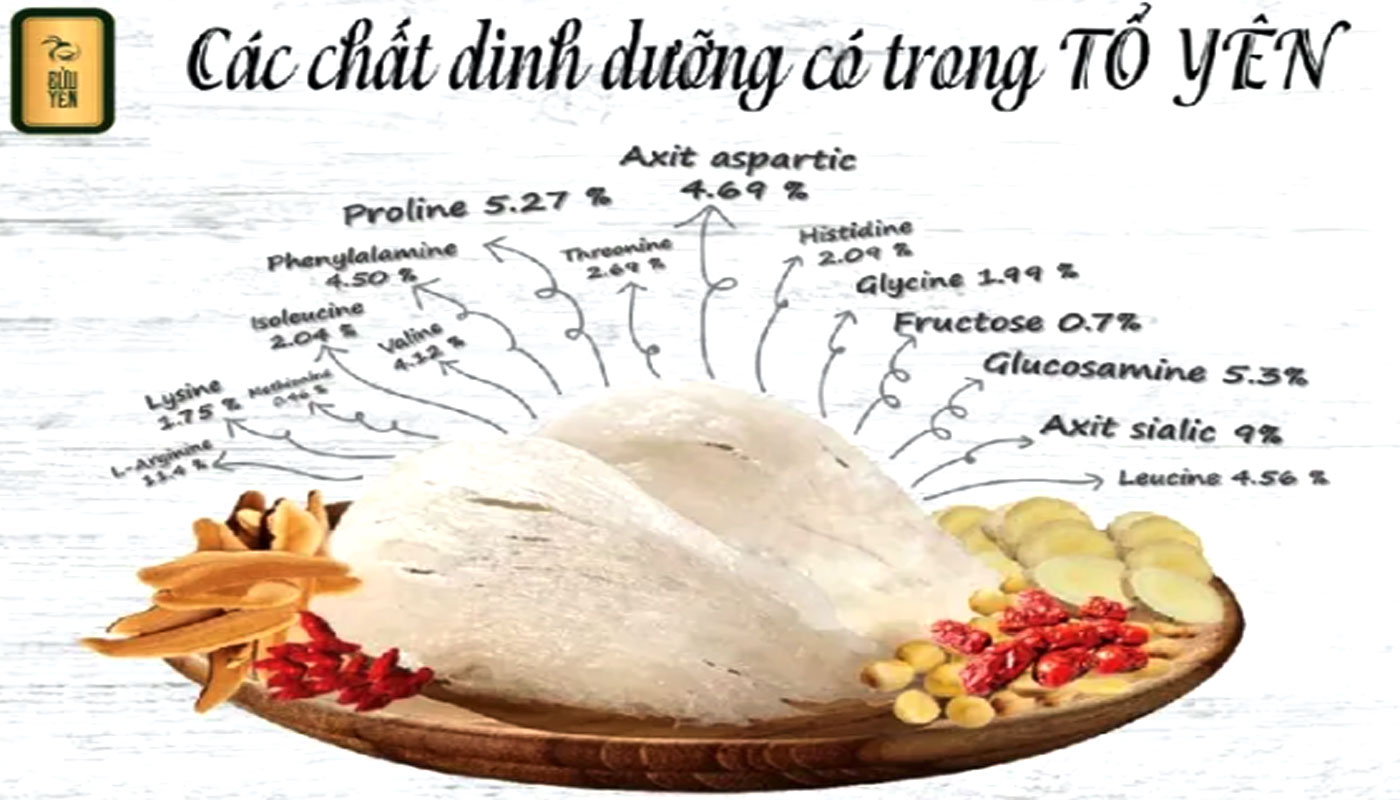 - Trong yến có chứa Threonine (một loại axit amin thiết yếu hỗ trợ miễn dịch cho cơ thể bằng cách sản sinh kháng thể) phong phú. Nhờ đó việc sản xuất collagen và elastin cũng được thúc đẩy để hình thành các loại tế bào mới, từ đó tăng độ đàn hồi cho da và cải thiện cấu trúc da một cách đáng kể.