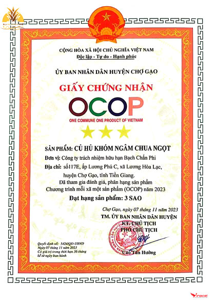 Củ hủ khóm ngâm chua ngọt – Đặc sản Tiền Giang được chế biến và đóng gói tại Công Ty TNHH MTV Bạch Chấn Phi