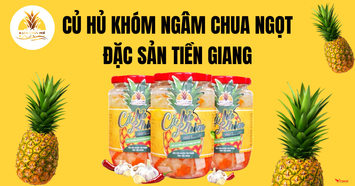 Củ hủ khóm là phần non của cây khóm chưa ra trái, vị nhẫn nhẹ, hậu thanh ngọt, hương vị đặc trưng. Là sản phẩm ăn kèm với các món mặn như cá kho, thịt kho, cơm sườn hoặc trộn gỏi. Củ hủ khóm ngâm chua ngọt là một trong những đặc sản nổi tiếng của Tiền Giang. Nó được làm từ củ hủ khóm, là loại thực phẩm được lấy từ lõi non của cây khóm.