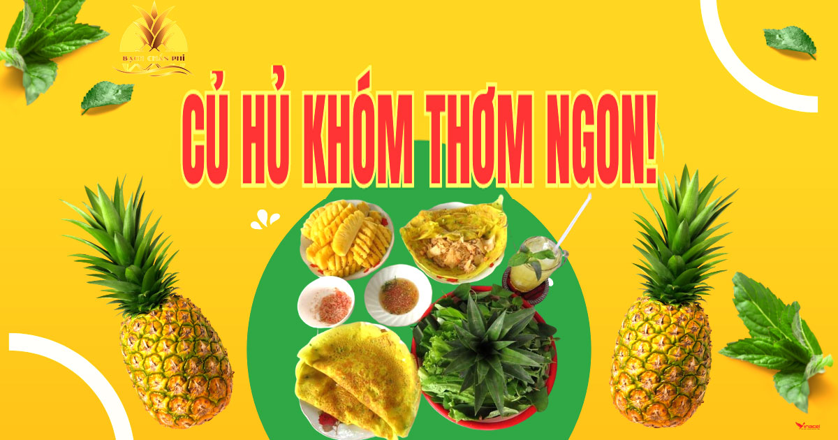 Củ hủ khóm là một món ăn dân dã của bà con nông dân nơi đây, trong củ hủ khóm chứa nhiều chất khoáng, chất xơ và đặc biệt là Bromelain giúp làm mềm thực phẩm , hỗ trợ tiêu hóa. Củ hủ khóm thường được chế biến thành các món như xào, nấu canh, trộn gỏi và đặc biệt là đổ bánh xèo.